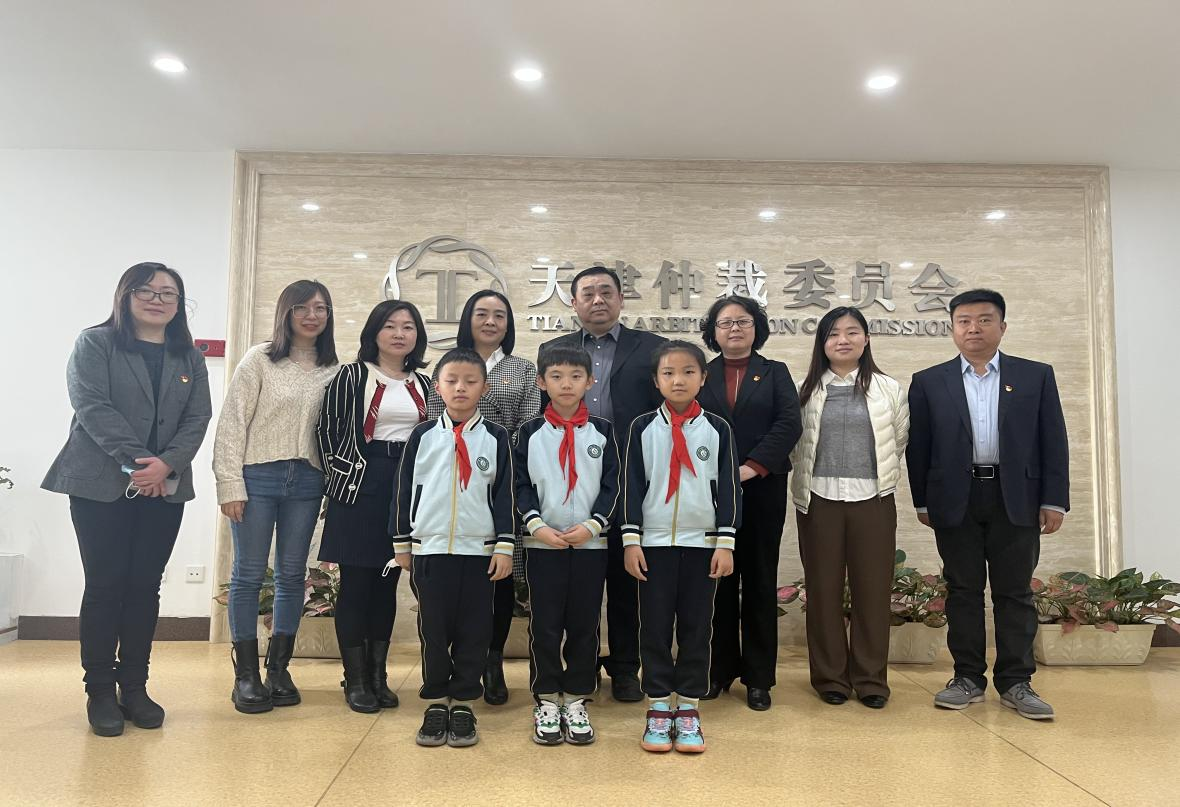 為深入推進(jìn)“我為群眾辦實(shí)事”實(shí)踐活動(dòng),落實(shí)我辦聚焦服務(wù)“一老一小”,切實(shí)解決群眾急難愁盼問(wèn)題的部署,繼10月28日仲裁辦走進(jìn)南開(kāi)區(qū)躍升里小學(xué)普法教育之后,11月17日仲裁辦黨支部書(shū)記、主任翟國(guó)良同志帶隊(duì)邀請(qǐng)?zhí)旖蚴泻游鲄^(qū)水晶小學(xué)書(shū)記及師生代表走入天津仲裁委員會(huì)實(shí)地感受仲裁糾紛辦案的氛圍,并舉行了天津仲裁辦與河西區(qū)水晶小學(xué)的法治教育共建簽約活動(dòng)。