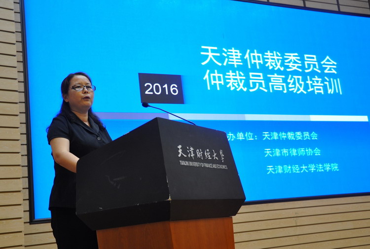 2016年6月4日,天津仲裁委員會在天津財經(jīng)大學(xué)月牙報告廳舉辦2016年度仲裁員高級培訓(xùn)活動。培訓(xùn)由本會辦公室副主任唐瑜女士主持,天津財經(jīng)大學(xué)法學(xué)院院長陳燦平先生及天津市律協(xié)副會長才華先生出席并致辭。
